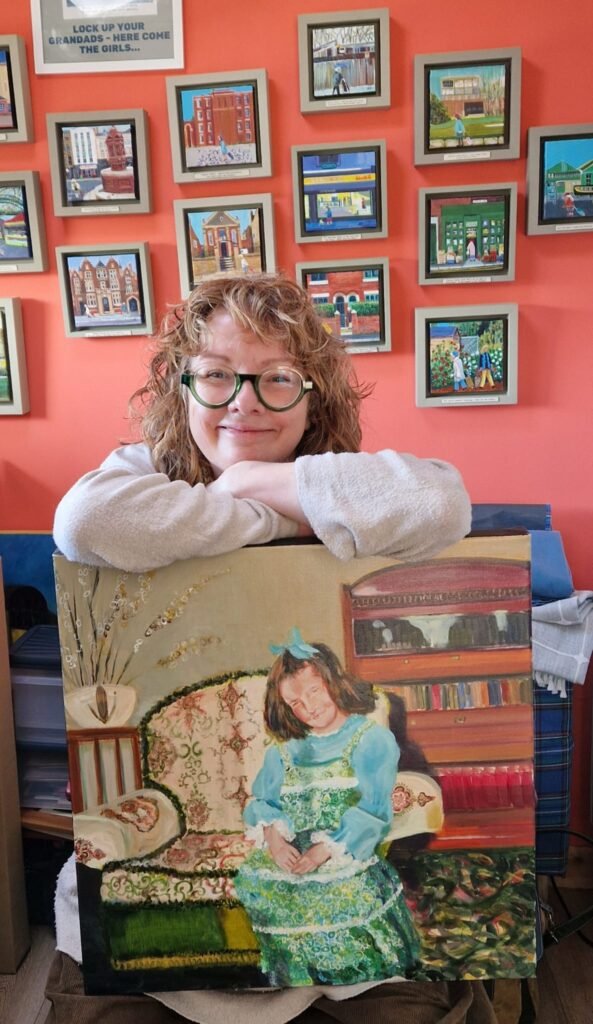 My studio is open by appointment, offering a relaxed chance to see the work up close, talk through ideas, and spend time with the paintings in the space they’re made. Visitors are welcome to browse finished pieces, view works in progress, and ask questions — no pressure, no white gloves, just an honest look at the process behind the work. If you’re considering a particular painting or commission, a studio visit allows time to connect with the story, the colour, the humour and the detail that doesn’t always come through on a screen. Expect conversation, a cuppa, might stretch to a custard cream and a bit of a gossip but always a very warm welcome.