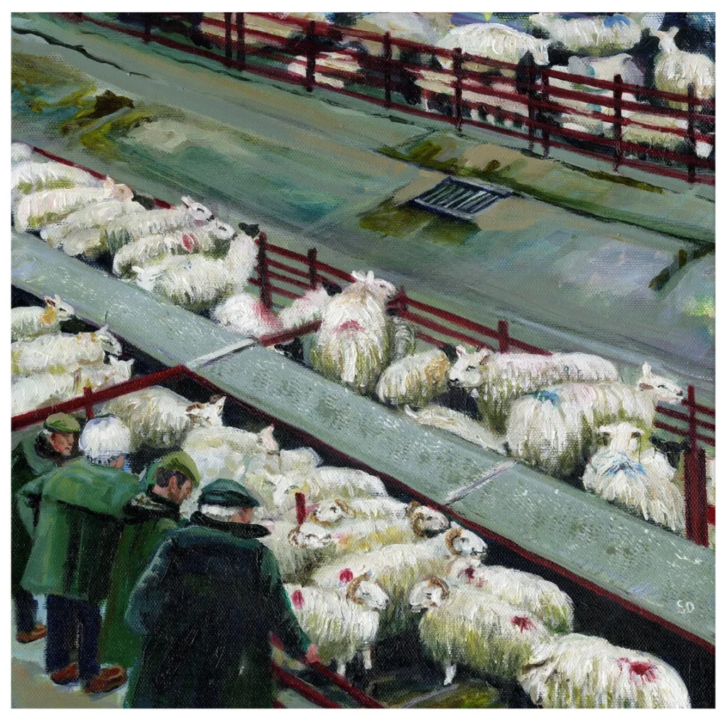 Art print ltd ed giclee 1/135 of Auction Mart taken from the original painting depicting a sheep sale at a farmer’s market.