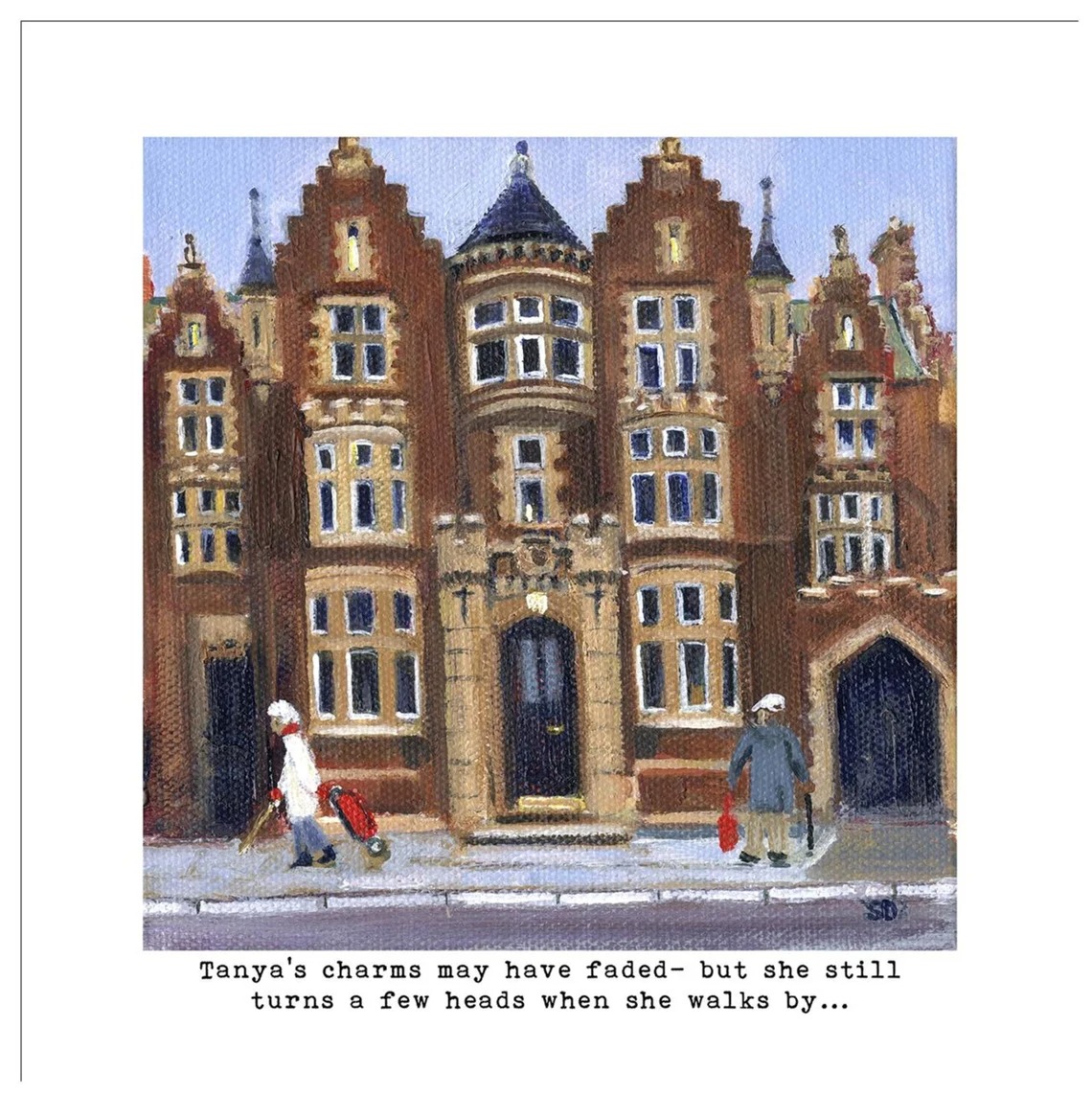 A signed open edition giclee print of Owd Lass ‘Tanya’s charms may have faded-but she still turns a few heads when she walks by…’ a story of faded glory and old age.