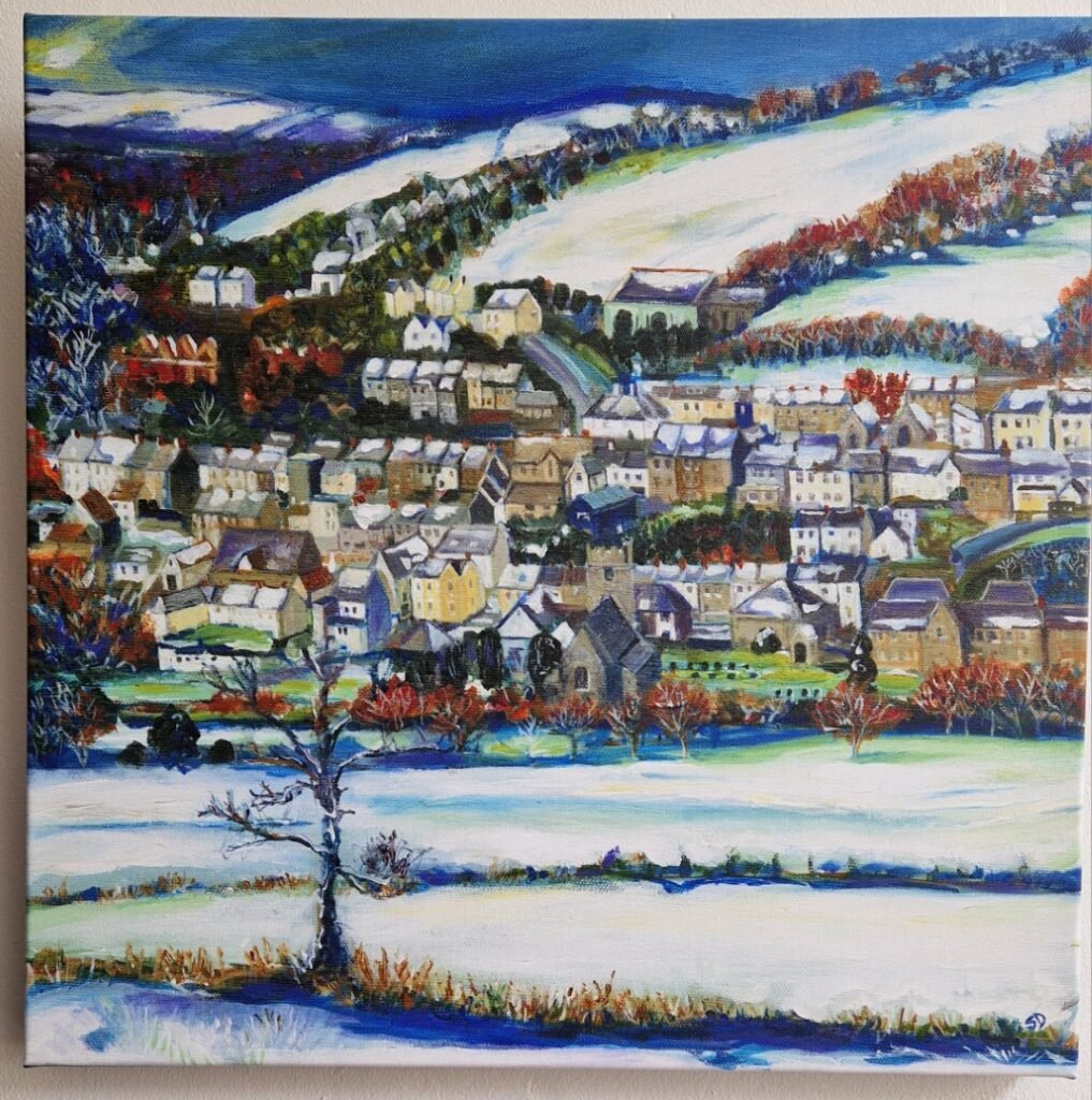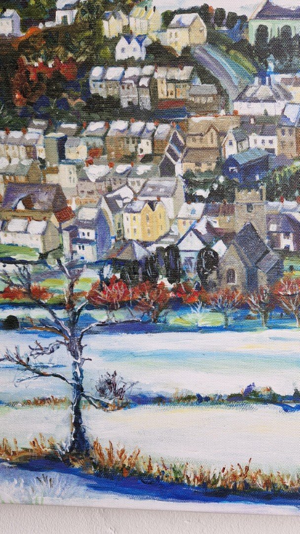 A print on boxed canvas of this snowy view of Llandysul.