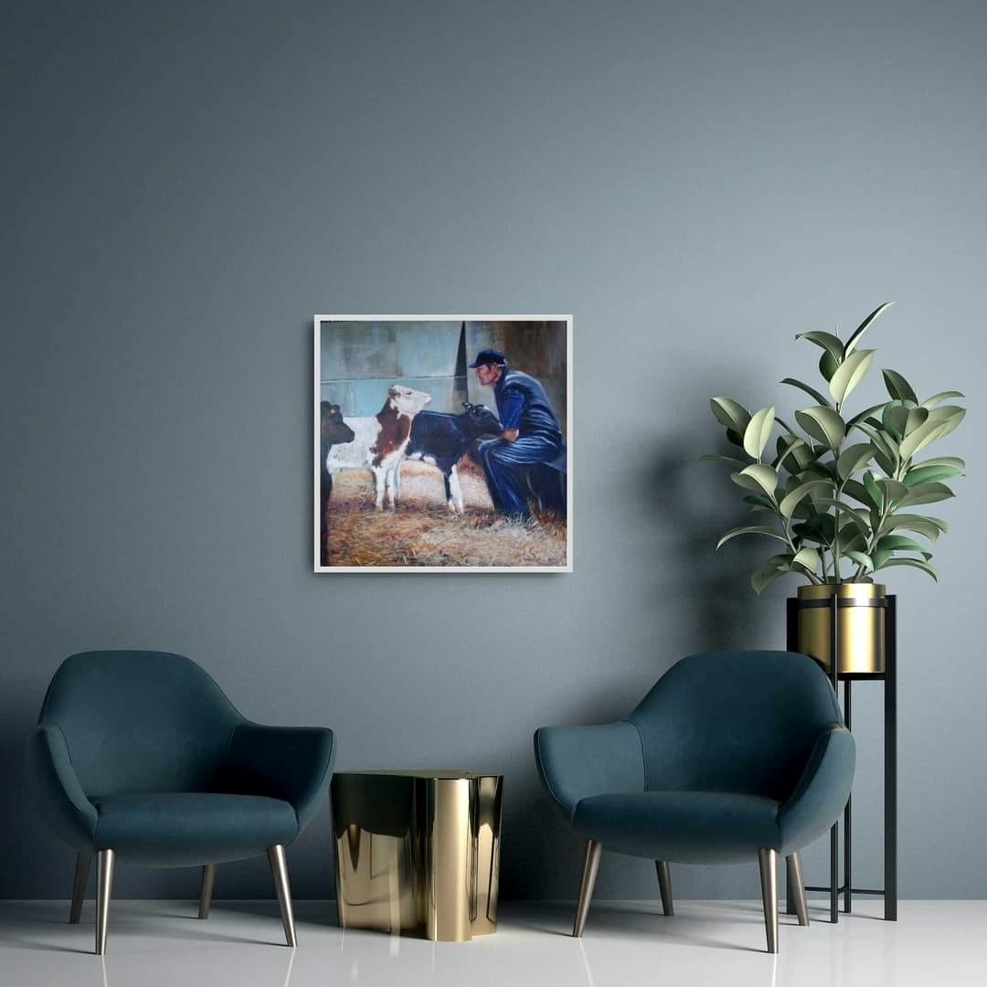 Scenes like this reveal something that many people outside farming rarely witness: the quiet care and respect farmers have for their animals. This painting is my attempt to record that rare moment of connection.